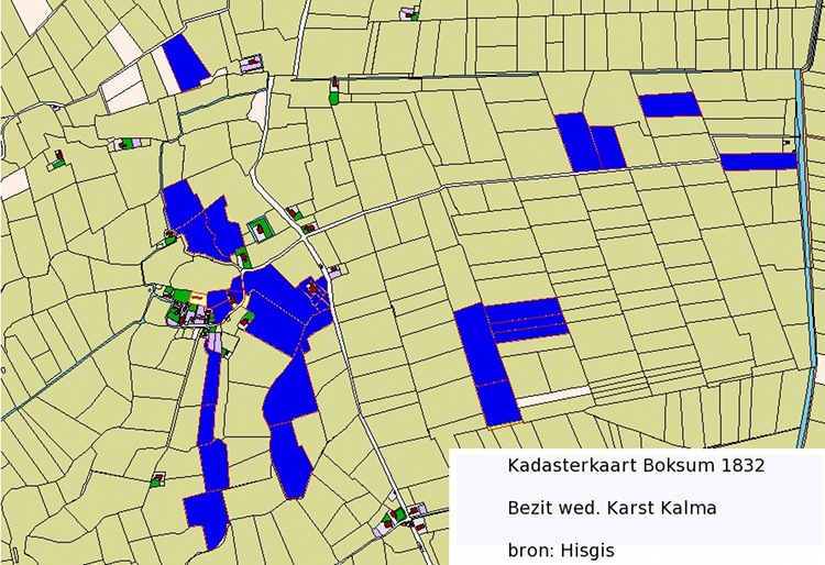 Boerderijen in bezit van Karst Kalma de vader van Hiltje Kadaster Boxum 1832
