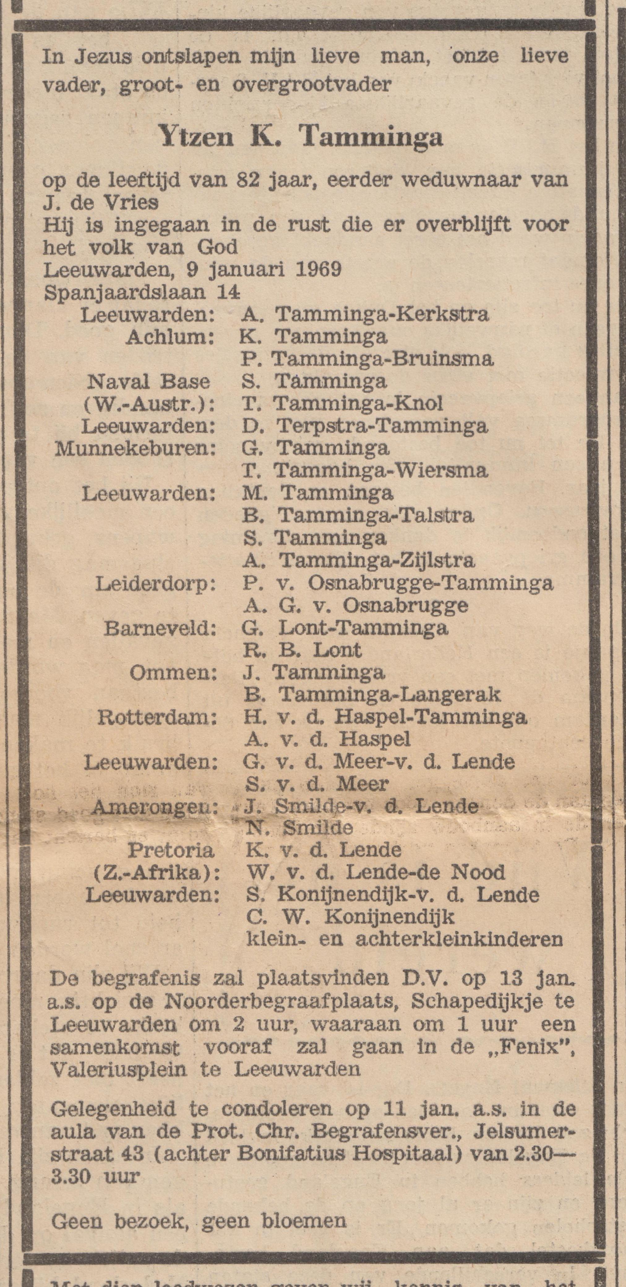 Overlijdensadvertentie Ytzen Karsjens