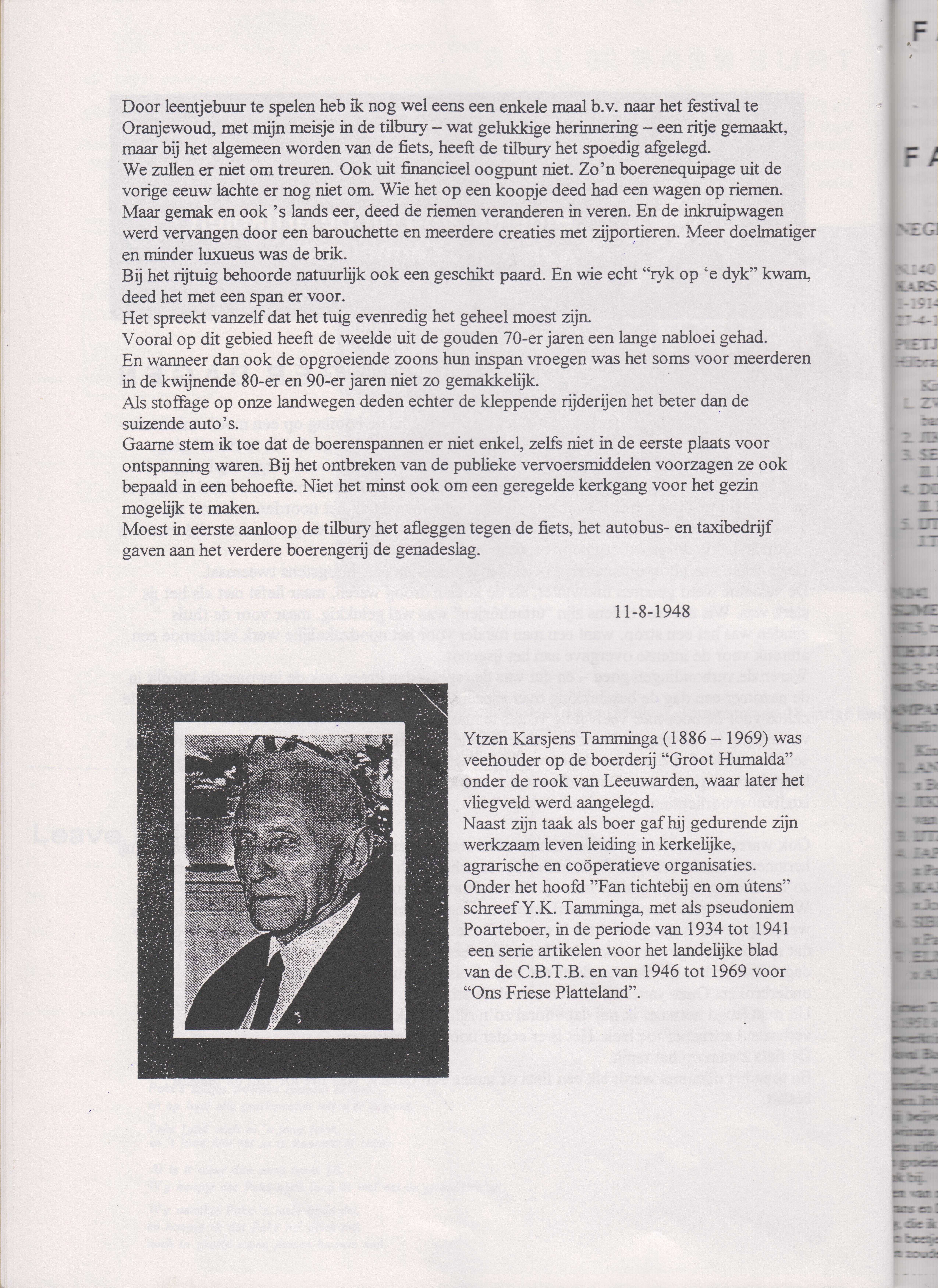 In memoriam van Ytzen K. door Fedde Schurer in Friesch Dagblad